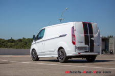 Le comportement de la version Sport ne change pas des autres, la suspension n’est pas spécialement plus ferme ou plus basse. Reste que la tenue de route est satisfaisante ainsi ! En courbe et en changement de direction, le Transit ne tangue que très peu, avec cependant une tendance au sous-virage. Parallèlement, la direction se manipule en douceur mais semble trop déconnectée du train avant.