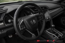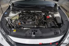 On trouve sous ce capot, comme toujours avec les ingénieurs Honda, de la haute technologie. Mais adieu le VTEC atmosphérique de 1.8 litres et bonjour au « petit » 1.5 VTEC turbocompressé. Nous avons donc maintenant une plus petite cylindrée, boostée par un turbocompresseur à mono-rotor avec une turbine ayant peu d’inertie. Elle est couplée à une soupape de décharge électronique qui gère avec précision la pression de suralimentation. Au final, ce bouilleur délivre 182 ch et 240 Nm.