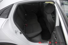 Il y a des voitures grandes à l’extérieur mais qui offrent un espace intérieur confiné. Avec cette Civic Sport, il n’en est rien. Vous avez le beurre et l’argent du beurre… A l’arrière, vous voyagez en première classe, jambes et têtes sont à l’aise. Le coffre, fort de ses 478 litres, accepte facilement les valises des quatre passagers. Toutefois, à certains, il manquera peut-être la crémière… En effet, cette version a un peu perdu en modularité. La banquette arrière est maintenant plus basique, adieu l’astucieux système de « coulissage » et de fond plat. Mais était-ce vraiment nécessaire ? Et je ne parle pas de la crémière…