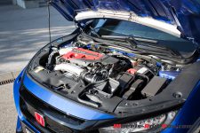 Le cœur de cette nouvelle Civic Type R est un 2.0 quatre cylindres VTEC greffé d’un turbo. Il développe 320 ch à 6’500 t/min pour un couple maximum de 400 Nm disponible entre 2’500 et 4’500 t/min. Les performances sont quasiment identiques à celles de la précédente Type R, mais je trouve quand même que l’ensemble est plus homogène. Couplée à une transmission manuelle à 6 rapports, l’armada de canassons est toujours distribuée exclusivement sur le train avant. Selon mon ressenti personnel, globalement l’agrément de conduite gagne en souplesse, c’est un peu plus civilisé tout en étant plus performant.