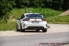 A l’arrière, entre le spoiler et la triple sortie d’échappement, c’est un peu moins raffiné. C’est sûr, la Civic Type R affirme son identité. Mais malgré cela, l’ensemble se veut plus sobre et ça devrait convaincre la clientèle historique qui n’a plus vraiment vingt ans. Les irréductibles adhèrent sûrement un peu moins mais prenez le temps de bien l’observer et vous verrez qu’elle n’a pas tant perdu de caractère.