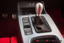 Petit bémol, alors que notre voiture d’essai dispose du Pack Carbone, la console autour du sélecteur de boite aurait dû être en carbone mais ce n’est pas le cas. Probablement un petit couac sur cet exemplaire en tout début de production. Rien de dramatique mais il me paraissait important de le préciser car si vous optez pour cette option, ça sera différent de nos photos et plus joli.