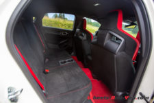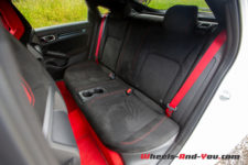 Pendant mon essai, j’avais l’impression que cette nouvelle Type R était plus grande que la précédente mais finalement, les chiffres démontrent que la différence n’est pas si importante, à peine 4 cm de plus en longueur et pas tout à fait 2 cm en largeur. Néanmoins, le sentiment d’espace est bien présent, notamment aux places arrière. On peut juste regretter que ce soit une stricte 4 places. Par contre, le coffre propose un volume de 410 litres, soit 10 litres de moins que celle qu’elle remplace alors qu’en rabattant les sièges arrière, la capacité atteint 904 litres, soit 118 litres de plus qu’avant.