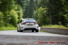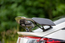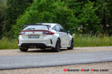Comme je le disais en introduction, cette nouvelle Civic Type R arbore un style plus sobre que la précédente. La teinte « Blanc Championship » de notre auto de test renforce peut-être cette impression mais s’il n’y avait pas le gros aileron, en carbone pour l’occasion (inclus dans le Pack Carbone en option), on pourrait presque passer inaperçu à son volant.