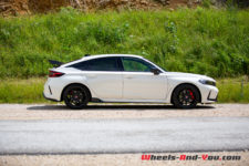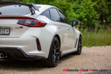D’accord, le bouclier avant est agressif à souhait et combiné au regard acéré des optiques très sombre, notre japonaise donne vraiment le sentiment de tout vouloir avaler sur son passage. Rajoutez-lui les hanches bien prononcées aussi bien à l’avant qu’à l’arrière ainsi que les belles jantes noir mat et vous constatez, en vous y attardant, que cette nouvelle Civic Type R affiche quand même une certaine prestance. Toutefois, elle le fait avec un tantinet plus d’élégance que précédemment et je trouve ça très réussi.