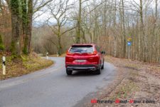 Le grand défaut en revanche, c’est que le dynamisme global en pâtit. Avec 193 chevaux sous le capot, on peut s’attendre à disposer d’un outil vigoureux permettant des accélérations tranchées et des relances franches. Or, ce n’est pas ici le cas. Sans faire dans le poussif à outrance, lors de sollicitations plus appuyées, le moteur délivre rapidement la puissance, mais tire court, en émettant un bruit non négligeable. Je me sens alors au contrôle d’un générateur dont la puissance a un peu de mal à passer aux roues. Ma conclusion est donc sans équivoque : il m’est inutile de rouler de manière nerveuse et d’aller chercher les limites dynamiques, mais plutôt de capitaliser sur la souplesse en optant pour une conduite la plus fluide possible.