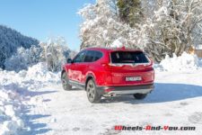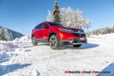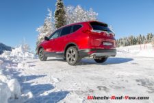 En matière de consommation, Honda annonce une gourmandise tournant des 7.6 l/100km pour la version 173 chevaux, tandis que la mouture dopée à 193 chevaux promet une consommation à 8.6 l/100km. Dans les faits, je peux constater une consommation de 9.1 l/100km, sur un parcours mixant circulation urbaine, autoroutière et ascension de cols. En milieu purement montagnards, incluant des excursions sur poudreuse, le chiffre se limite à 9.9 l/100km.