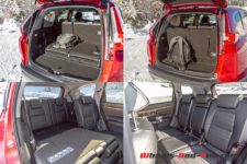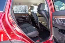 En parlant de volume de coffre, ce dernier offre 472 litres dans la configuration standard 7 places, ce qui le classe dans la moyenne basse du segment. Cependant, les choses s’améliorent sensiblement une fois tous les sièges rabattus, puisque ce sont 1’756 litres qui sont offerts, ce qui situe le CR-V dans les meilleures capacités face à la concurrence.