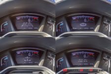 Le système d’infodivertissement s’appuie sur deux moniteurs, l’un au tableau de bord et l’autre en tête de console centrale, de 7 pouces de diagonale. Le premier est particulièrement fourni en information – un de trop à mon goût – et autorise l’affichage de quasiment l’intégralité des données possibles. Le second profite de l’évolution du système embarqué made in Honda, qui gagne en réactivité. L’ergonomie des menus n’est pas un modèle du genre mais reste tout à fait convenable.