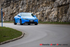 C’est sur route plus sinueuse que la Prelude révèle définitivement son positionnement. L’inscription en virage est saine, le freinage rassurant et l’adhérence correcte, même dans des conditions loin d’être idéales avec des gommes hiver. Mais dès que le rythme augmente, le châssis montre ses limites. Les transferts de masse sont marqués, l’arrière devient plus mobile et l’ensemble manque de précision. On peut certes aller vite mais sans la sensation de maîtrise totale qui caractérise une vraie sportive. Le train avant engage mais l’ensemble devient ensuite plus flou, hésitant.