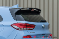De prime abord, la i30 N se la joue assez discrète, notamment par rapport à la Civic Type R, l’une de ses compétitrices directes. Là où la nippone associe un design très extraverti à des appendices flirtant avec la caricature, la coréenne pose sa silhouette en toute élégance et toute modestie. En effet, aucune extravagance outrageuse ne vient ternir une anatomie courtoise et presque évidente.