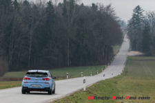 Dès lors, je me régale de virolos en virolos. Si, en ligne droite, lors de fortes accélérations, l’auto cherche un peu la route (effets de couple sur un train avant encaissant 275 ch associé à une monte pneumatique hivernale), elle se laisse placer en courbe avec précision et son train arrière s’avère joueur juste ce qu’il faut. Je déplore néanmoins l’absence des Pirelli P-Zero compris dans le pack N-Exclusive. Conditions hivernales obligent.