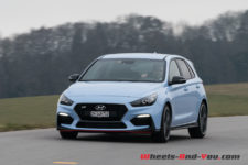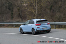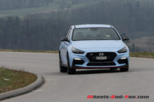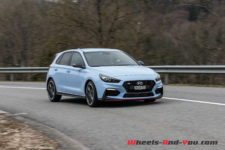 Comparée à la Civic Type R, traction sportive référence du moment, la Hyundai reste en retrait en termes de précision et d’efficacité. Sa direction est moins communicative et moins chirurgicale, sa boîte légèrement moins précise, sa puissance, et donc ses performances, en retrait, mais elle n’en est franchement pas très loin de sa rivale et présente un look bien plus élégant. Pour une première incursion dans le monde musclé des compactes sportives, on peut affirmer que la i30 N est une réussite. Une autre concurrente directe vient il y a peu d’entrer sur le ring. En effet, d’une puissance similaire, la Megane R.S. se profile avec l’avantage potentiel des quatre roues directrices. Nous ne manquerons pas d’en publier un essai complet d’ici cet été.