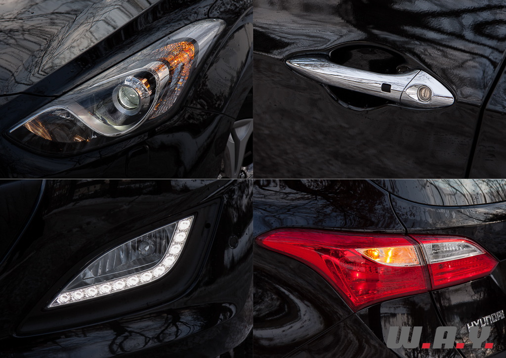 J’ai aussi particulièrement apprécié l’excellente visibilité en conduite de nuit. Les puissants projecteurs xénon couplés aux phares de virage dynamiques AFLS offrent une vision nocturne sans faille. Je profite de ce détail, qui n’en n’est pas vraiment un, pour mentionner l’équipement de sécurité hors pair qui équipe notre Hyundai i30 Wagon. En plus des 7 airbags et des traditionnels ABS et ESP, la voiture est équipée d’une gestion de la stabilité VSM (Vehicle Stability Management), d’une assistance en cas de freinage d’urgence BAS (Emergency Brake Assist System), d’une aide au démarrage en côte HAC (Hill Start Assist Control) ainsi que le témoin d’affichage ESS (Emergency Stop Signal) qui fait flasher les feux de stop lors de freinage d’urgence. Bref, vous l’aurez compris, c’est de la sécurité cinq étoiles qui est proposée dans cette nouvelle i30, d’ailleurs c’est justement la note, la plus haute possible, qu’elle a reçu lors du crash test européen NCAP.