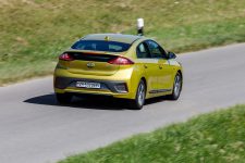 La version électrique est livrée avec un moteur de 88 kW ou 120 ch. Comme toujours sur ces engins, le couple de 295 Nm est disponible dès les premiers tours de roue et ce jusqu’à la vitesse maximale de 165 km/h. Théoriquement, cette puissance permettrait à la Ioniq d’atteindre pratiquement les 200 km/h, mais comme souvent sur les voitures électriques, il y a une seule vitesse et la limite de la rapidité de la voiture se trouve dans la capacité maximale des tours/minutes du moteur électrique.