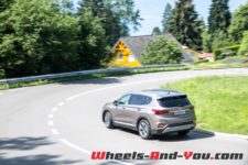 Moult routes de l’arrière-pays de la cité française de Tours ont le vilain défaut d’être en mauvais état. C’est naturellement une situation à déplorer, mais j’y ai vu là une occasion de tester de manière exhaustive la motricité et l’adhérence du 4×4. Le constructeur fait éloge de son système HTRAC, non sans raison. Sur le terrain, le Santa Fe gère parfaitement les défectuosités du bitume et délivre une motricité impeccable. Malgré de forts creux dans l’asphalte et des parties goudronnée à faible adhérence – pour cause de gravillons -, il s’avère être totalement sûr, en plus d’être aussi confortable que possible.