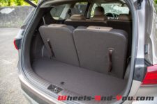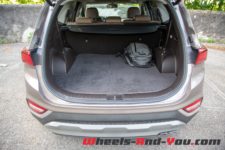 En matière de coffre, le Santa Fe se positionne de manière variable face à ses rivaux, selon s’il est en mode 2 ou 5 places disponibles. En configuration standard, il offre 547 litres de chargement, ce qui le place dans les valeurs hautes du segment ; une fois la deuxième rangée de sièges rabattue, la capacité passe à 1’625 litres, ce qui cette fois le place dans les capacités les moins avantageuses. Petite ombre au tableau : le seuil de chargement s’avère être un chouia haut et peut s’avérer peu pratique, même dans les situations ordinaires comme charger des courses.