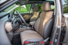 Le cuir beige « two-tone » habille l’ensemble des sièges, une grande partie de la planche de bord ainsi que l’intérieur des portes et les contre-panneaux de console centrale inférieure. Ce cuir est de bonne facture, tout comme les plastiques noirs qui l’accompagnent. L’impression globale de qualité est d’ailleurs très bonne, avec aucun élément mal fini ou s’avérant rude à l’emploi.