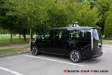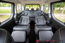 L’ennui de ces sièges électriques, c’est qu’ils n’ont pas de fonction rabattement pour faciliter l’accès au dernier rang. Il faut passer entre les deux places qui coulissent également de gauche à droite. Autre inconvénient de ces sièges sur rails, ils ont tendance à soulever les moquettes qui ne tiennent pas bien en place, ce qui n’est pas très esthétique. Sur le 7 places, il y a une prise USB à disposition pour 6 d’entre elles, ce qui est bien adapté à l’air du temps. On a aussi des stores pare-soleil pour chaque fenêtre ainsi que des ouvertures manuelles (coulissantes, ou en écartement).