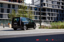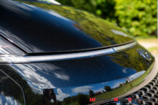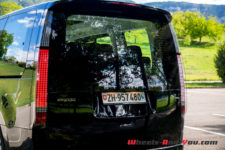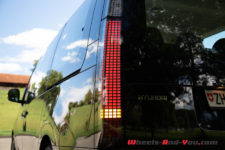 À l’arrière, l’énorme porte hayon a logiquement une grande surface vitrée. Ce sont surtout les feux qui attirent l’œil, tout en gros pixels qui font ensemble trois quarts de la hauteur de la caisse. Malheureusement la partie supérieure ne s’illumine pas. Les clignotants ne font que deux lignes de pixels, en dessous des feux. Sur la route, ils ont un fonctionnement séquentiel alors qu’en warning ils clignotent simplement.