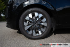 Sur le flanc, il n’y a que les poignées jointes qui offrent du relief. Elles sont imposantes et très conventionnelles, contrairement au reste de l’extérieur. J’aime bien la forme de flèche des vitres pour rejoindre la base du pare-brise qui est plus haute que le bas des fenêtres. Les jantes ont un design particulier, travaillé, et en 6 trous ce qui est inhabituel.