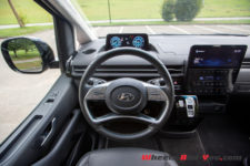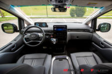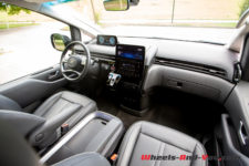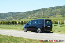 Ne vous attendez pas à une accélération fulgurante, ni à des entrées en courbes dynamiques. On se déplace dans une grosse familiale que la physique n’épargne pas. La tenue de route est saine pour une utilisation normale mais pas de miracle au-delà. En augmentant le porte à faux arrière, Hyundai a réduit l’empattement pour permettre de tourner sans trop de peine dans des ruelles, l’environnement urbain s’apprivoise assez bien en Staria.