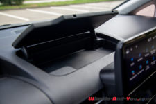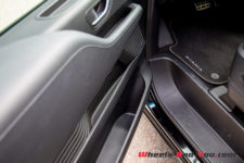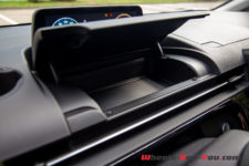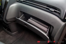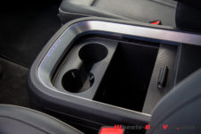 Au cours de mon essai, j’apprécie particulièrement les nombreux rangements à portée de main partout dans l’habitacle. Le panneau de porte avec trois niveaux de vide-poche est un must. La boite à gant ne peut pas contenir grand-chose, mais il y a suffisamment d’autre endroit où laisser des objets : le bloc central est gigantesque, sous la planche de bord il y a un renfoncement, sur le tableau de bord il y a encore deux rangements. Même le dos des sièges avant ne se contente pas d’un emplacement, il y en a deux par siège.