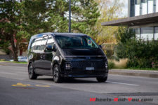 À première vue, le Hyundai Staria a tout pour convaincre le client de notre pays qui prendrait un Multivan ou un Classe V avec un bon paquet d’options : boite auto, 7 places et du coffre, portes coulissantes, traction intégrale, il faut juste aimer le look. Tous les jours, je me délectais de la réaction des gens dans la rue. Peu importe si on voit d’abord l’avant ou l’arrière, c’est tout juste s’ils ne se frottent pas les yeux croyant halluciner.