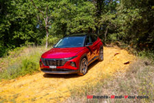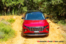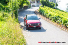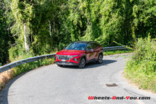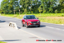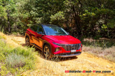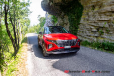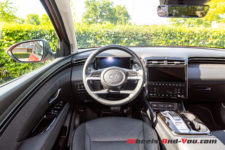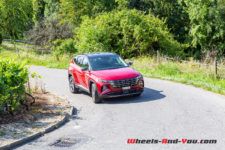 Bien que s’étant nettement urbanisé, le Tucson conserve dans son ADN une composante baroudeuse en proposant un mode terrain, mais aussi une gestion de la vitesse en descente sur terrain accidenté. Automobile asiatique oblige, l’accent est fortement mis sur le confort. On peut très clairement ressentir cette orientation dans le réglage de la suspension, qui est lâche, voire trop lâche à mon goût. Si le filtrage des imperfections de la route et très bon, le roulis est par contre très présent, avec un effet bateau fortement perceptible lorsque j’augmente le rythme et que j’aborde certains tournants, me forçant à réduire l’allure alors que je me situe dans les limitations de vitesse. Si certains y verront là un franc défaut, à titre personnel je préfère y voir un élément qui concourt à une conduite plus coulée et plus en harmonie avec l’hybridation embarquée.