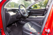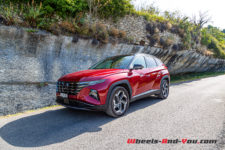 En matière de consommation, selon mes relevés, le Tucson affiche en cycle mixte à forte tendance urbaine une consommation moyenne de 5,4 l/100km, tandis qu’en utilisation routière, la gourmandise en énergie fossile se fixe autour de 6,6 l/100km. Sur 1’700 km d’essai, je consomme au total 102,6 litres d’essence et 5,06 kWh d’électricité.