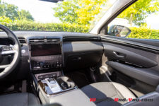 Pour avoir fait récemment un tour dans un Tucson de 2013, je constate que le bond en avant dans la qualité de finition et dans l’équipement est plus que notable. Le Tucson cuvée 2021 n’a plus grand-chose en commun avec ses aînés, le temps d’un SUV typé populaire est bien loin. On a ici droit à un véhicule avec un assemblage bien fait, solide mais aussi qualitatif dans ses matériaux. Dans le design, si l’extérieur ose sortir des sentiers battus, l’intérieur va à contre-sens. La répartition des fonctionnalités est très « by the book » : rien de spécial, mais rien de rédhibitoire dans l’ergonomie. C’est bien pensé, pratique, accessible par tous, tant au niveau du volant que de l’infodivertissement dont le système d’exploitation est fluide et bien ordonné.