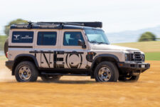 L’Ineos Grenadier s’appuie sur une base mécanique robuste signée BMW, avec un six cylindres en ligne de 3.0 litres, proposé en essence ou en diesel. Dans les deux cas, il est associé à une boîte automatique ZF à huit rapports et à une transmission intégrale permanente associée à une boîte de transfert Tremec à deux rapports offrant une gamme courte pour le franchissement. Le moteur essence B58 développe 286 ch pour 450 Nm de couple tandis que le bloc diesel B57 délivre 249 ch et un couple généreux de 550 Nm dès les bas régimes.