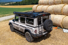 Les volumes sont massifs, globalement carrés mais adoucis par des arêtes arrondies qui courent du capot au bouclier. Ce subtil mélange de rectitude et de douceur visuelle modernise la ligne sans lui faire perdre son ADN utilitaire. Le pare-brise presque vertical et le capot plat, véritables clins d’œil aux 4×4 classiques, accentuent la lecture horizontale tandis que le bouclier avant, massif et volontairement en plastique simple, affiche sa raison d’être : encaisser, protéger, se remplacer facilement. Même la découpe frontale est pensée pour ouvrir le passage lors des franchissements les plus engagés.