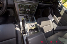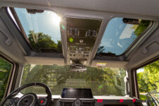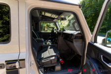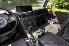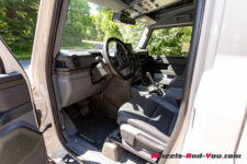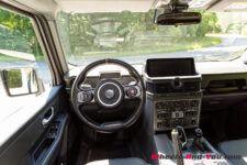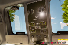Le poste de conduite surprend par son agencement original. Devant le conducteur, un seul cadran sert de rappel visuel, regroupant les voyants principaux. L’essentiel des informations – vitesse, régime moteur, températures, données de navigation et multimédia – se trouve sur l’écran central. Mais la surprise est au plafond : une rangée d’interrupteurs façon cockpit d’avion, regroupant les commandes des différentiels, des modes tout-terrain, du passage à gué, des assistances électroniques et même de l’éclairage extérieur et intérieur.