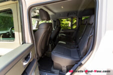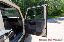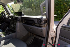 Sous l’écran central, une boussole analogique intégrée renforce l’atmosphère d’expédition. Face au passager, une poignée transversale s’ajoute aux poignées latérales et à celle intégrée au pilier A. Partout, on retrouve une logique utilitaire où chaque élément a un but précis. Les rangements sont limités mais pratiques : une boîte à gants modeste, un compartiment central bien agencé et quelques espaces pour petits objets.