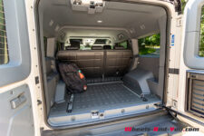Le coffre est vaste et cubique. Sa double porte arrière intègre dans la plus grande section un support de table rabattable. De multiples points d’ancrage réglables via des rails et une prise 12V complètent l’équipement. Tout respire la praticité et l’esprit d’aventure.