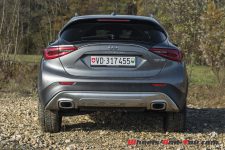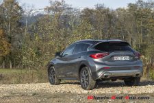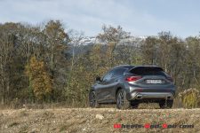 Sur route sèche, le QX30 se conduit comme la traction qu’il est. En effet, les roues arrière entrent véritablement en action, maximum à 50%, uniquement si le besoin s’en fait sentir, notamment en cas de perte de motricité des roues avant. J’avoue préférer les 4×4 davantage typés propulsion, mais ce QX30 me surprend agréablement car son comportement demeure très dynamique tout au long de cet essai, voire agile en montagne.