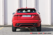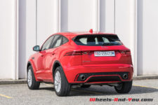 Cette sportivité du style est soutenue par la large calandre noire, des aérations sur les ailes avant, une double sortie d’échappement de part et d’autre de l’extracteur. Les optiques s’intègrent parfaitement à la ligne, comme les feux arrière larges et fins. D’où qu’on le regarde, je trouve cet E-Pace vraiment réussi !
