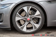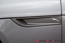 Je note également des ouvertures sur le capot moteur et, petite touche élégante, l’apparition du Jaguar sur les flancs, en retrait des roues avant. Pour notre version « First Edition », les très belles jantes 20 pouces bicolores confèrent beaucoup d’allure à l’ensemble.