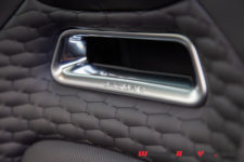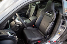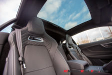 De série sur cette déclinaison « First Edition », les sièges Performance propose un excellent confort avec un maintien suffisant pour une GT. Habillés de noir, ils s’agrémentent d’une surpiqûre grise claire et arborent quelques détails, comme le Jaguar sur les appuie-têtes, du plus bel effet.