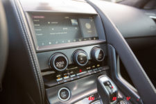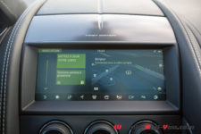 L’habitacle n’évolue quasiment pas en comparaison de la précédente mouture. Certes, un nouvel écran 12.3 pouces vient prendre place sur la console centrale et le système infotainment a été revu. Mais pour l’heure, la F-Type ne bénéficie pas des nouveaux intérieurs comme les SUV de la marque. Personnellement cela ne me choque pas, j’ai toujours apprécié cette ambiance qui se veut sobre sans être morose.