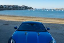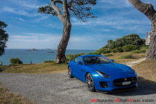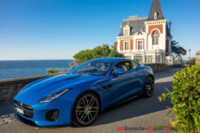 Petite pause vers les huit heures du matin afin d’avaler un croissant, mon chocolat chaud et je repars. A 10h45, je suis face à la plage de Dinard, frais comme une sole avant qu’elle ne devienne meunière. La F-Type fait son show au milieu d’autres belles et sa couleur en fera rêver plus d’un. Faire de l’autoroute avec cette Jaguar n’est pas une « punition » bien au contraire. Je connais peu de sportives capables d’offrir un tel confort de roulage. Les amortisseurs sont réglés plus souple que sur la version V6. Au début, cela surprend quand on est dans un col à l’attaque. Mais on s’habitue et le compromis est efficace quelle que soit la situation. La puissance ne sert à rien si le châssis ne suit pas. Ici, nous n’avons « que » 300 ch, ce qui permet tout de même une conduite rapide en toute sécurité. Tout ceci dans un confort d’absorption des inégalités des revêtements actuels bien plus efficace que sur certaines sportives de renom.