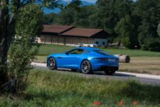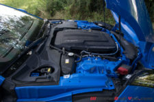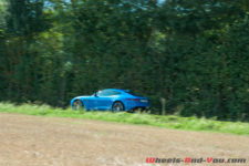 Un long capot avec un habitacle reculé, un regard affûté, agressif à souhait, rehaussé par l’option pack extérieur noir brillant, l’avant est sublime. L’arrière n’est d’ailleurs pas en reste. Massif, surligné de feux assez fin et, pour cette version, d’une unique grosse et carré sortie d’échappement centrale. Assez bestiale, je l’admets. Un petit spoiler se déploie à partir de 100 km/h, améliorant la portance, et se rétracte dès que l’on descend sous les 80 km/h.