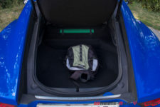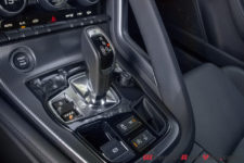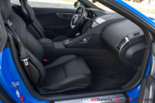Notre voiture se veut plus GT que pure sportive. Pour preuve, l’ensemble des petites attentions dont regorge la Jaguar et dont une vraie sportive extrême se passe. Tout d’abord le coffre arrière électrique. Certes, c’est une option, mais elle existe. Ainsi équipée, gros piston hydraulique et moteur électrique ajoutent du poids en plus, en trop quand on se veut une pure sport, ce qui n’est pas le cas ici.
