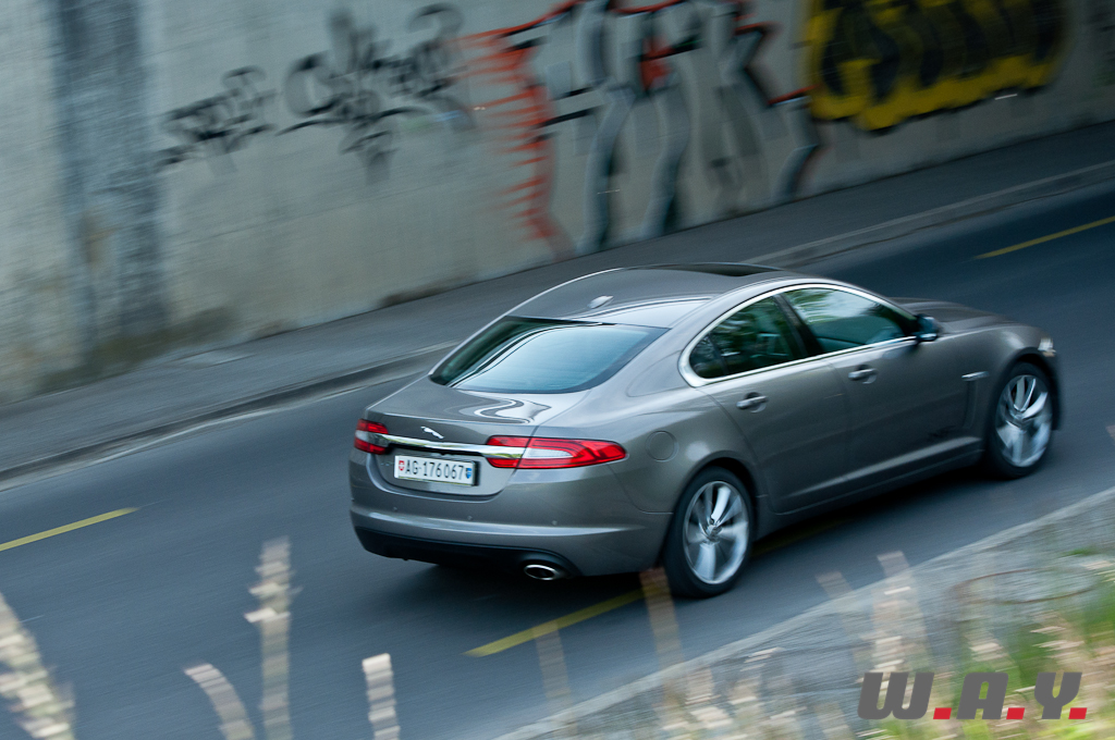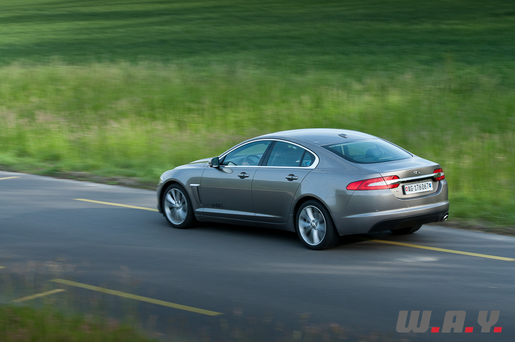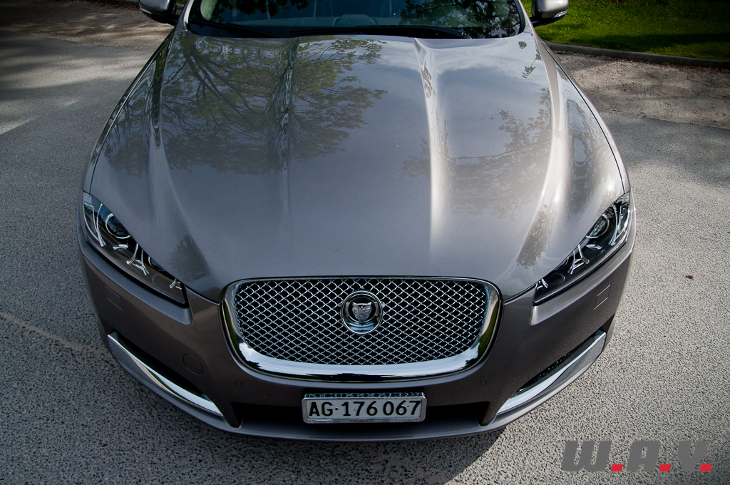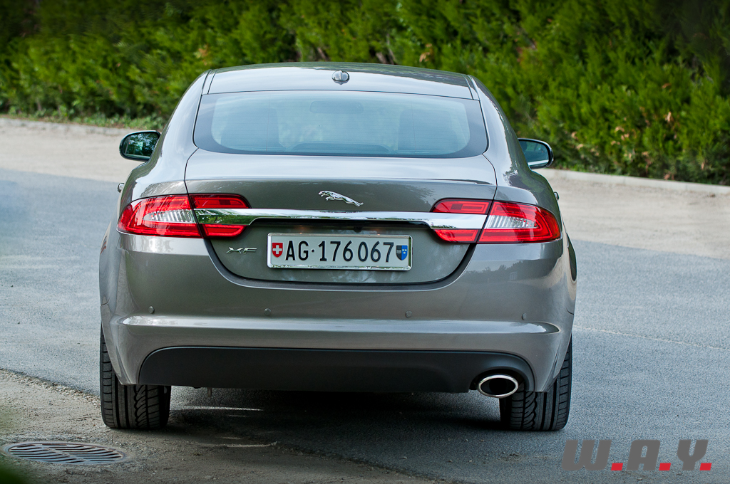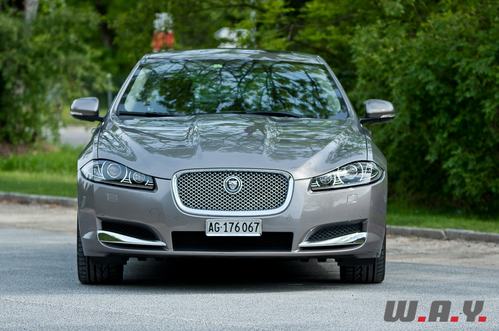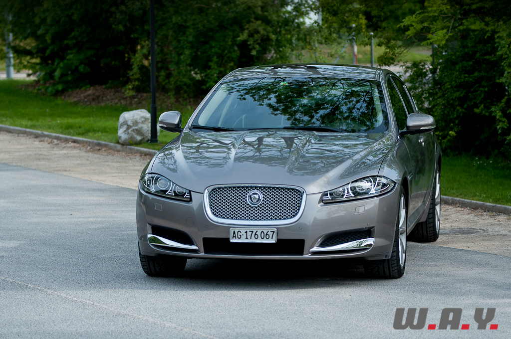 Le véritable verdict après un essai, c’est ce que l’on ressent au moment de rendre les clés. Après dix jours de test intensif, je confesse un petit pincement au cœur au moment de signer la décharge et un autre en démarrant ma voiture, dont la boîte auto 6 vitesses, qui faisait ma fierté de propriétaire avant l’essai, réagit mollement et semble fonctionner non pas au bain d’huile, mais au beurre de cacahuètes. Sur ce point j’aimerais être très clair : la boîte ZF qui équipe la XF est un prodige d’efficience. En effet, il n’y a pas si longtemps, opter pour une automatique signifiait se priver de 10% de puissance, tandis qu’avec les dernières générations, on ne sent pratiquement pas de décalage par rapport à une transmission manuelle. Un exemple ? Notre photographe estimait la puissance de la XF à 230 CV alors qu’elle n’en développe que 190. A noter que pour le millésime 2013 de sa XF 2.2 D, Jaguar ajoute 10 CV pour taquiner la barrière des 200 CV. Pour résumer, si la XF ne remplit que partiellement le cahier des charges d’une Jaguar traditionnelle qui se doit d’avoir une réserve de puissance dans toutes les situations, elle reste une voiture attachante et surprenante qui fait mentir les chiffres. Et au prix de base de CHF 59’500.-, elle pourrait bien faire des vagues, face à des marques généralistes qui facturent leurs moutures « toutes options » à des prix comparables, mais sans l’esthétique, ni l’exclusivité, encore moins l’espace. D’autant plus que sa carrosserie sera bientôt déclinée en version break, ou plutôt « Sportbrake », en bon anglais.