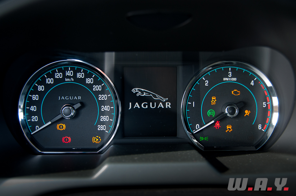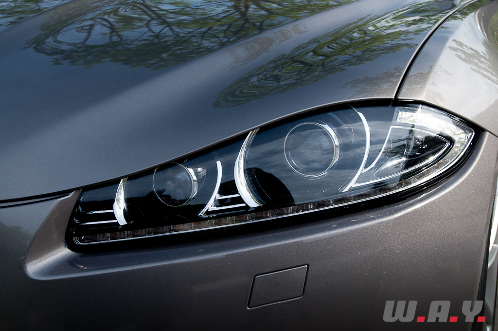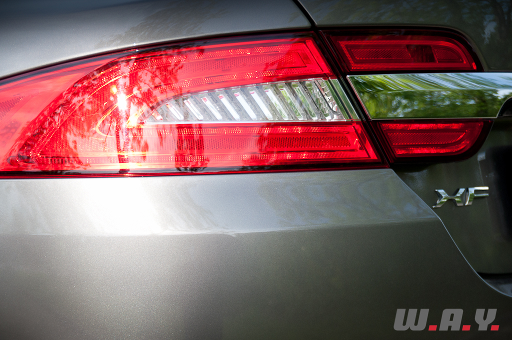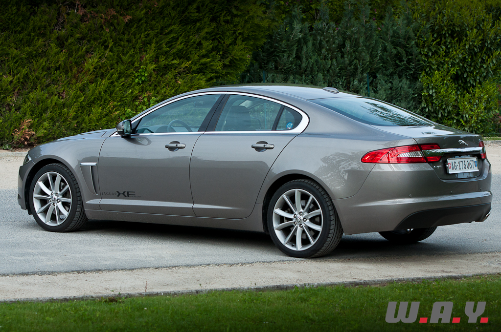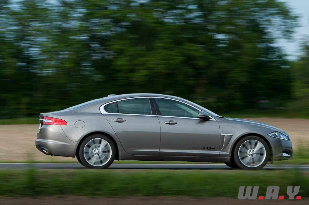 Commençons par évoquer ce qu’était, il y a 20 ans, une « bonne » Jaguar. En caricaturant subtilement, on pense à un salon « Chesterfield » roulant tout confort, capable de flâner en ville autant que d’augmenter la cadence sans brusquer ses occupants. A l’époque, aller acheter le pain au son du V12 anglais le dimanche matin était un peu comme aller voir « Don Juan » à la Scala de Milan : un moment d’exception. Sous l’impulsion de son propriétaire Tata depuis 2008, Jaguar est entré récemment dans une phase de ‘grands chantiers’, et cela est réjouissant à plus d’un titre. Il y a eu l’actualisation de la gamme actuelle (XJ, XF et Coupé XK), mais aussi l’annonce d’une stratégie de conquête agressive matérialisée par un coupé compact deux places et décliné en roadster très attendu (F-Type). Mais l’avenir commence maintenant avec cette XF de deuxième génération, restylée et remotorisée. Au moment d’entrer à bord, je me demande ce qu’il subsiste de cet esprit typiquement « Jaguar », alors que ma promise se contente, et c’est une première, d’un quatre-cylindres turbo-diesel de 190 CV et de 6 litres de gazole en moyenne. Autant dire un « dé à coudre » pour une voiture de ce gabarit.