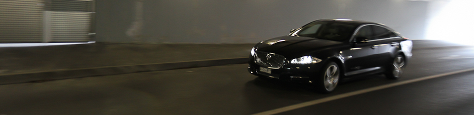 Grâce à son train avant à double triangulation, sa suspension arrière pneumatique (qui maintien l’assiette de la caisse quel que soit le poids du chargement), le tout géré par le système ADS (Adaptative Dynamics System), la Jaguar XJ maîtrise la route avec une énorme facilité. Il est même possible, pour les amateurs du genre, de totalement déconnecter le contrôle de trajectoire et l’antipatinage. Prenant peu de roulis, l’amortissement est taré assez ferme, correspondant encore une fois au positionnement plus sportif de la XJ. De ce côté-là, elle n’offre pas la même onctuosité qu’une Audi A8 ou une Mercedes-Benz Classe S, ce qui déplaira certainement à ceux qui se font conduire, mais ravira les amateurs du plaisir de conduite. Les petites imperfections de la route se traduisent par quelques trépidations. Peut-être aurait-il fallu offrir un mode « Confort » de la suspension active afin de contenter tout le monde ? Toujours comparativement à ses concurrentes, le poids « contenu » de la XJ, grâce à sa structure en aluminium riveté, lui permet une agilité rare dans le segment. La direction, facile, précise, très directe et bien calibrée retransmet parfaitement les informations de la route. En conduite dynamique, la XJ adopte un comportement neutre et efficace. Il n’y a qu’aux relances en sortie de courbe, si votre pied droit est très très lourd, que l’électronique se chargera de juguler les ruades du train arrière. Tout au long de cet essai, je n’ai jamais eu l’impression de conduire un paquebot de la route tant l’équilibre de cette limousine a été particulièrement peaufiné. Sur autoroute, inutile de préciser que le comportement de la XJ est souverain et les longs parcours ne seront que formalité. Enfin, le freinage est largement à la hauteur, avec une attaque de la pédale franche et rassurante ainsi qu’une très bonne résistance à la chaleur du système ne laissant point apparaître de fading.