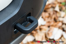 Les dimensions demeurent compactes : 4.09 mètres de longueur pour une largeur qui gagne 6 centimètres à 1.78 mètres et une hauteur de 1.54 mètres, barres de toit comprises. Le poids à vide – 1’536 kg – demeure identique à celui de la version électrique, la suppression de la batterie compensant l’installation du second essieu moteur.