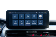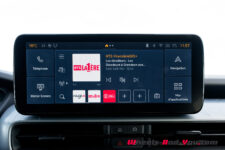 L’infodivertissement intègre Apple CarPlay et Android Auto sans fil et s’avère réactif. Il dispose de widgets qui permettent de personnaliser plusieurs versions de menus autant pour l’écran central que pour celui du conducteur. Les commandes de climatisations sont toujours proposées via une série de boutons poussoirs physiques situés sous l’écran central.