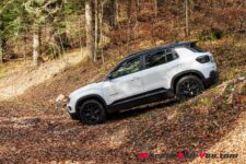 Après avoir roulé le Compass aux capacités tout-terrain surprenantes, je voulais tester l’Avenger 4xe hors du bitume. Et s’il arbore fièrement l’emblème Jeep, ses capacités offroad s’arrêtent à ce badge. Si ses quatre roues motrices lui amènent une bonne adhérence même sur gravier, lui permettant selon Jeep de gravir des pentes jusqu’à 40%, dès qu’une roue s’allège ou quitte le sol, en l’absence de différentiels bloquants ou d’électronique spécifique, l’Avenger s’immobilise. Il y a bien des modes terrain – sable/boue ou neige – mais qui n’apportent rien dans cette situation. Mais est-ce un problème, ce véhicule s’adressant à une clientèle urbaine ou campagnarde et non pas aux fans de franchissement extrême ? Je ne le pense pas.